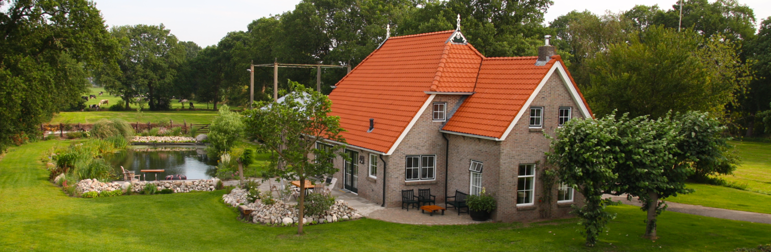 Doordat het huis omringd is met weilanden heeft u een weids uitzicht en kunt u ’s avonds genieten van een prachtige zonsondergang.